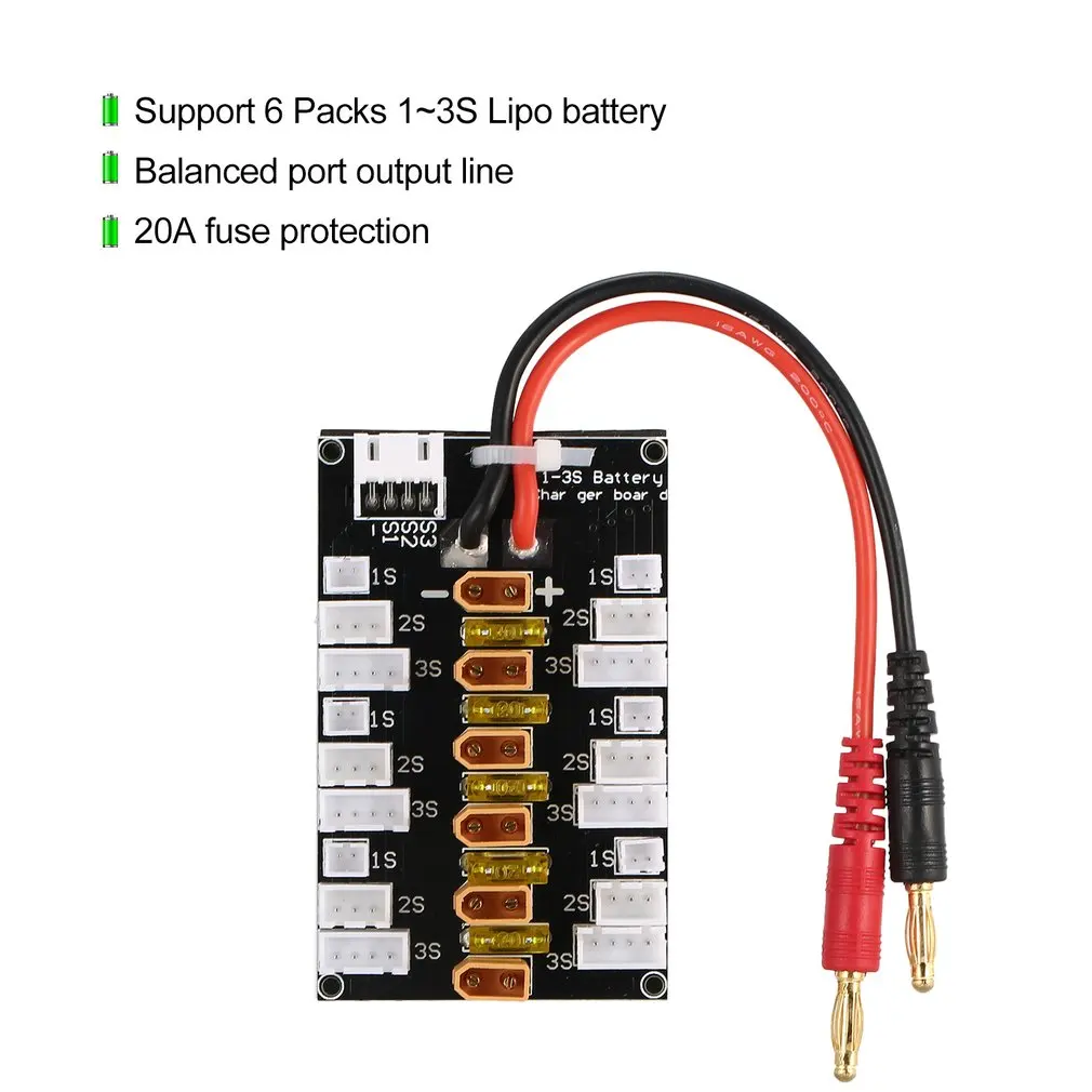 Related Product for 6 Packs 1S-3S 20A XT30 Plug Lipo Battery Parallel Charging Board for RC IMAX B6 Charger RC Car Dron